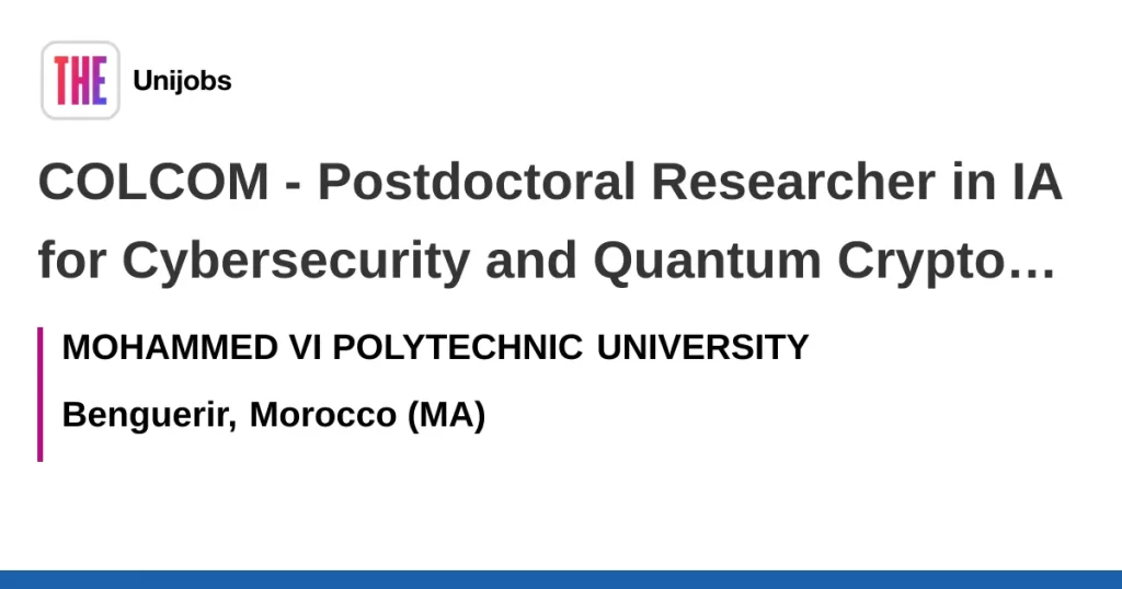 COLCOM – Postdoctoral Researcher in IA for Cybersecurity and Quantum Cryptography job in Benguerir, Morocco (MA) with MOHAMMED VI POLYTECHNIC …