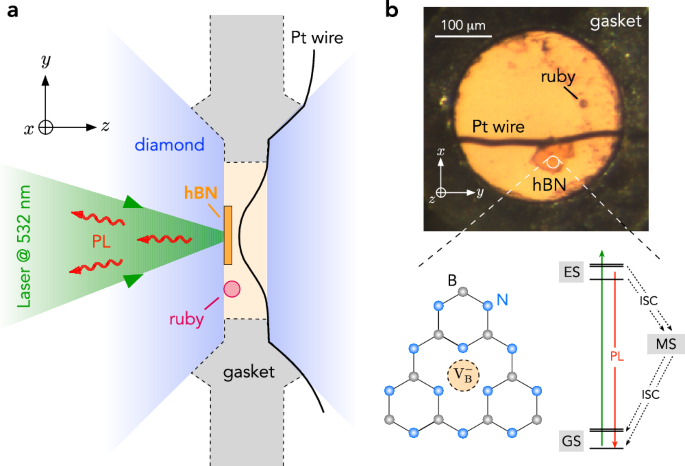 … quantum sensing platform based on boron-vacancy ( $${{{rm{V} … quantum sensors integrated into diamond anvil cells have enabled … More